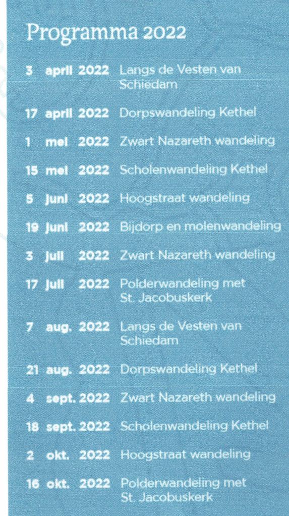 Er is een mooi programmaboekje samengesteld, af te halen bij het I-Punt in Schiedam of bij de diverse opengestelde panden in Schiedam en Kethel.